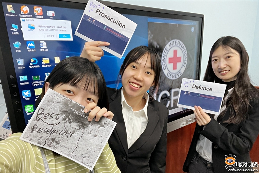 山东大学法学院代表队由李玥、俞艾歆、孙文丽3位同学组成,迟德强副教授担任教练。自7月底比赛案例发布以来,在迟德强副教授的指导下,队员们积极投入比赛准备,阅读国际人道法相关书籍,研读《日内瓦公约》和《罗马规约》相关条款及评注,检索案例,进行书状的撰写,于10月成功晋级口头赛,并最终在口头赛中获得三等奖。