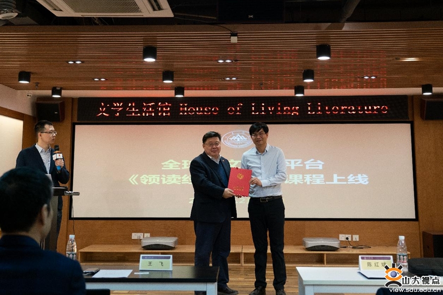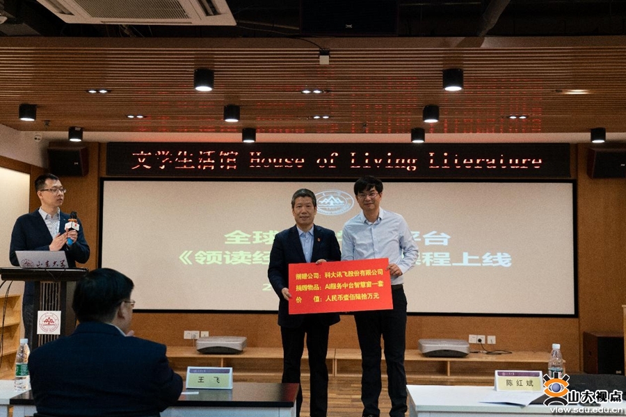 [本站讯]12月16日,新闻传播学院举行科大讯飞捐赠暨《领读经典》系列课程上线仪式。科大讯飞高教产品线总经理陈红斌,汉语考试产品线总经理潘泽亮;山东大学信息化工作办公室常务副主任葛连升,合作发展部部长王飞,本科生院副院长高凯,新闻传播学院党委书记王德胜、副院长邱凌、谢锡文教授等出席仪式。