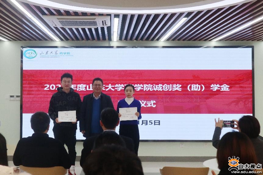 [本站讯]1月5日,药学院诚创奖(助)学金颁奖仪式在趵突泉校区举行。山东诚创医药技术开发有限公司副董事长吕志涛、人事总监于小颖、人力资源部部长李金凤,药学院常务副院长方浩、党委副书记王巍巍出席颁奖仪式,为本次获得奖(助)学金的28名同学颁发证书。学院辅导员周现民、吕淑良参加颁奖仪式。