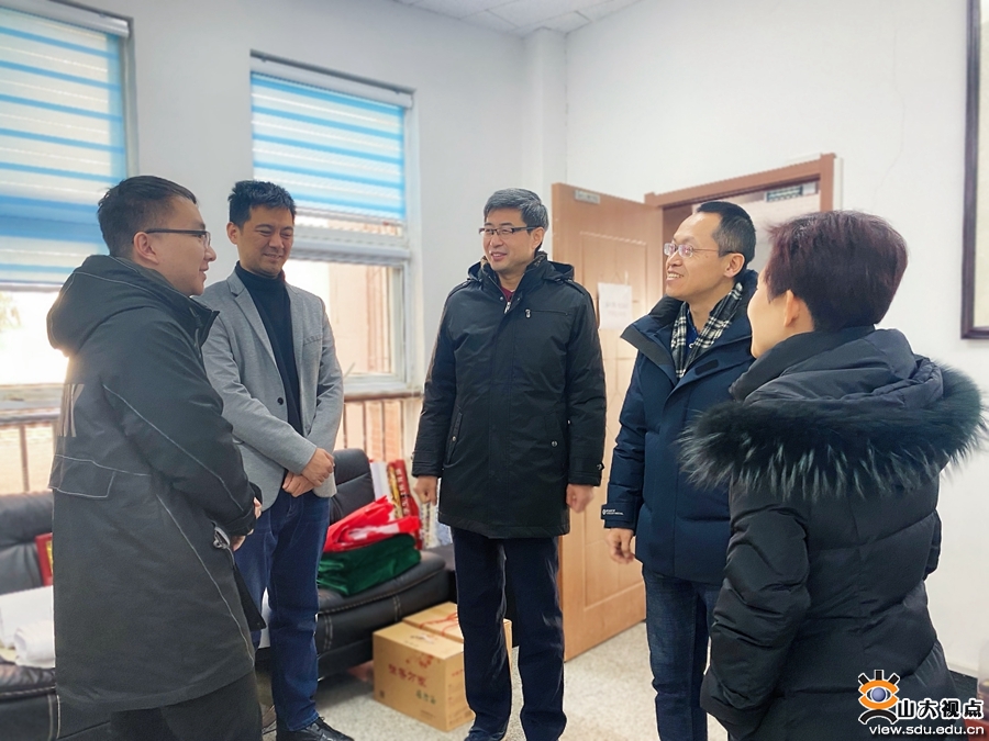 宋爱民、吴天柱、崔剑、办公室主任苏伟、本科生辅导员张欣欣看望春节留校学生,详细询问、了解学生的学习生活情况及需求,并勉励同学们合理作息,加强体育锻炼,充分利用在校时间充实自我,同时提醒同学们提高安全防范意识,叮嘱同学们多与家人沟通交流,让家人安心、放心,共同度过一个和谐、融洽的春节。留校学生表示会严格遵守学校、学院有关工作安排,合理规划在校的学习生活,度过一个充实、快乐的寒假。