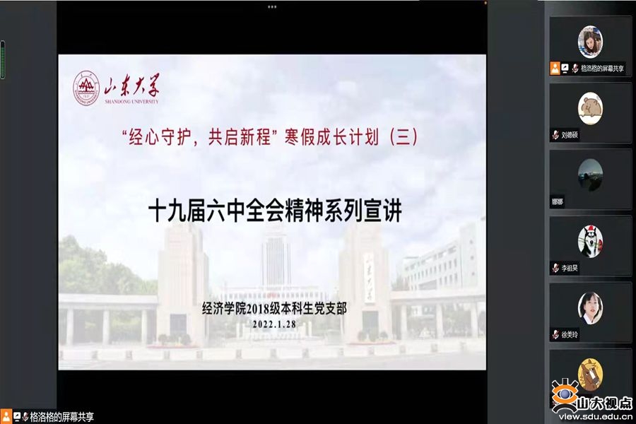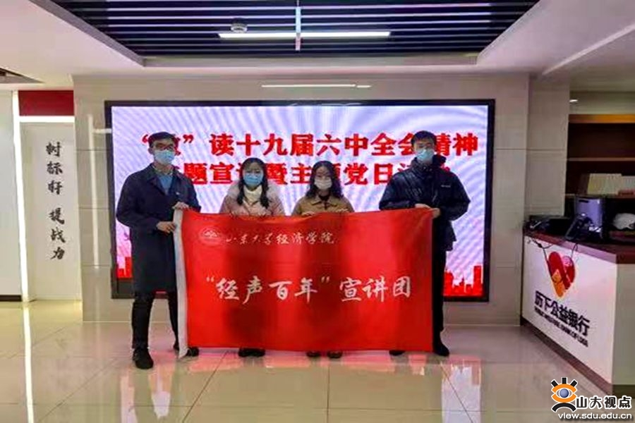 培固思想之源,推进思想学习有高度。结合党史学习教育,统筹学习党的十九届六中全会精神、习近平新时代中国特色社会主义思想、习近平总书记系列讲话精神、习近平总书记给《文史哲》编辑部全体编辑人员回信等,学院朱鹏华副研究员为同学们作十九届六中全会精神解读,引导广大青年学生坚定政治立场、坚守理想信念,为实现第二个百年奋斗目标、实现中华民族伟大复兴的中国梦而不懈奋斗。依托学院成立的“先锋力量”“经声百年”等党的十九届六中全会精神宣讲团,在学院范围内向同学们进行宣讲,以我们党通过的三大历史决议和党中央有关精神为依据,通过对四个历史时期的重大事件、重要会议、重要人物进行解读,引导同学们固本培元,树立正确党史观,争做时代接班人。