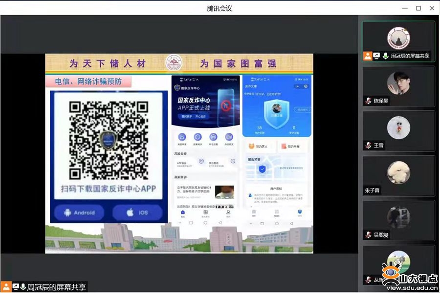 筑牢安全之基,推进安全教育有力度。加强防疫安全教育,开展“科学防疫”线上主题教育班会,通过PPT展示、播放视频等多种方式向同学们宣传防疫知识和个人防护指南,并提供了有关居家防疫的实用性建议,同时充分动员家长力量,共同筑牢疫情防线。召开防诈安全教育线上主题班会,通过通俗易懂的讲解方式,用身边鲜活的案例作为警示,向同学们普及了套路贷、校园贷、电信网络诈骗的常识,进一步提高了同学们对各类诈骗的防范辨识能力,增强了同学们的防诈安全意识。开展心理安全教育,邀请山东大学学生心理健康教育与咨询中心教师李晓晗为同学们作“假期快乐生存指南”主题心理健康安全讲座,向同学们讲授了如何在寒假期间缓解就业学习科研学术压力、愉快地和家庭相处、提高假期的效率及幸福感。