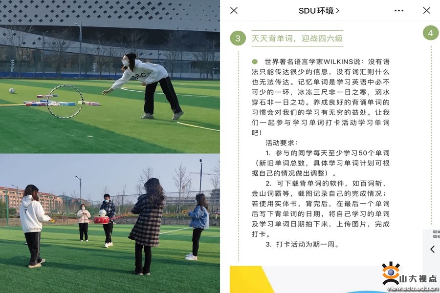 用心开展多彩活动。学院组织开展“一年春好处,打卡迎春来”线上打卡活动,通过跑步打卡、背单词打卡、早餐打卡等形式帮助学生在特殊时期保持生活规律,学业稳步提升。组织开展“心理趣味运动会”,让学生们在“同心鼓传球”“一圈到底”等拓展小游戏中,增强沟通、加强锻炼,缓解封闭期间的身心压力。