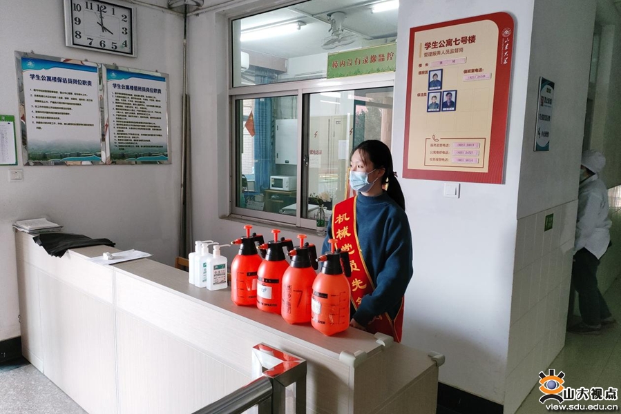 筑牢“疫”线堡垒,维护安全无死角。在校内后勤工作人员任务繁重的情况下,学生党员积极配合后勤工作,加强校园卫生清洁,对宿舍楼的公共区域进行全面消杀,在宿舍楼入口为进入宿舍的同学配发口罩、消毒液等防疫物资;在宿舍外清扫草坪和路沿垃圾,做到不留死角、不留盲区,有效遏制宿舍内外的病菌滋生。同时先锋岗安排党员提醒楼内定时通风。