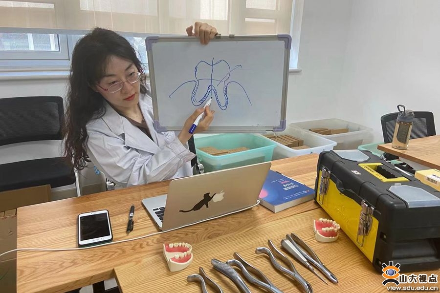 理论授课多样化。为增加理论课的趣味性,确保线上授课的教学质量,在借助雨课堂、腾讯会议、课程平台等基础上,教师们积极探索理论授课新模式,不断丰富教学内容。其中,《口腔科学》教师朱震坤利用视频、白板、教具等辅助工具为同学们示教拔牙过程,《口腔正畸学》教师刘东旭教授将理论知识与课程思政充分结合,进一步发挥思政育人良好效果。