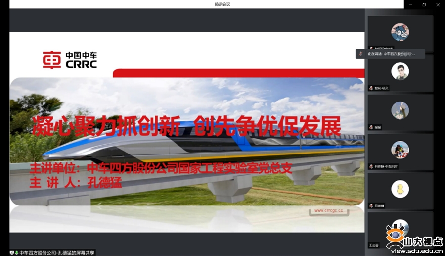 会上,孔德猛作题为“凝心聚力抓创新,创新争优促发展”的报告,详细介绍了中车实验室党总支的基本情况、工作开展及党建工作亮点。他重点阐述了中车实验室党总支“123”“420”的特色党建融合机制,提出了在促进项目融入、推动创新攻关、党员创先争优方面的一系列先进做法,给予了加强党建工作与中心业务的顶层设计、融合机制、部署落实三方面的建议。他表示,希望通过党建共建联建,逐步形成支部联建、活动联办、发展共谋的合作格局,以党建引领双方齐头并进,实现双赢。