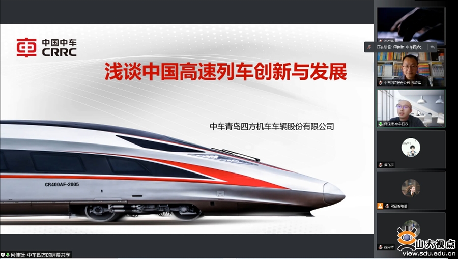 随后,为贯彻落实学院“师生一家亲”互动小组行动方案,丰富在校生的学习生活,活动特别邀请何佳捷作“浅谈中国高速列车创新与发展”的学术报告。他介绍了中国高铁发展取得的辉煌成就,讲解了中国高铁的高速发展历程与创新实践经验,提出了新要求和新机遇下的高速列车创新发展新体系和新模式,强调了人才是实现创新驱动发展的主体。最后,他表示要从多维度人才培养体系与创新机制构建方面入手,助力学生创新实践能力提升,实现校内、校外导师双向并行、全员育人。