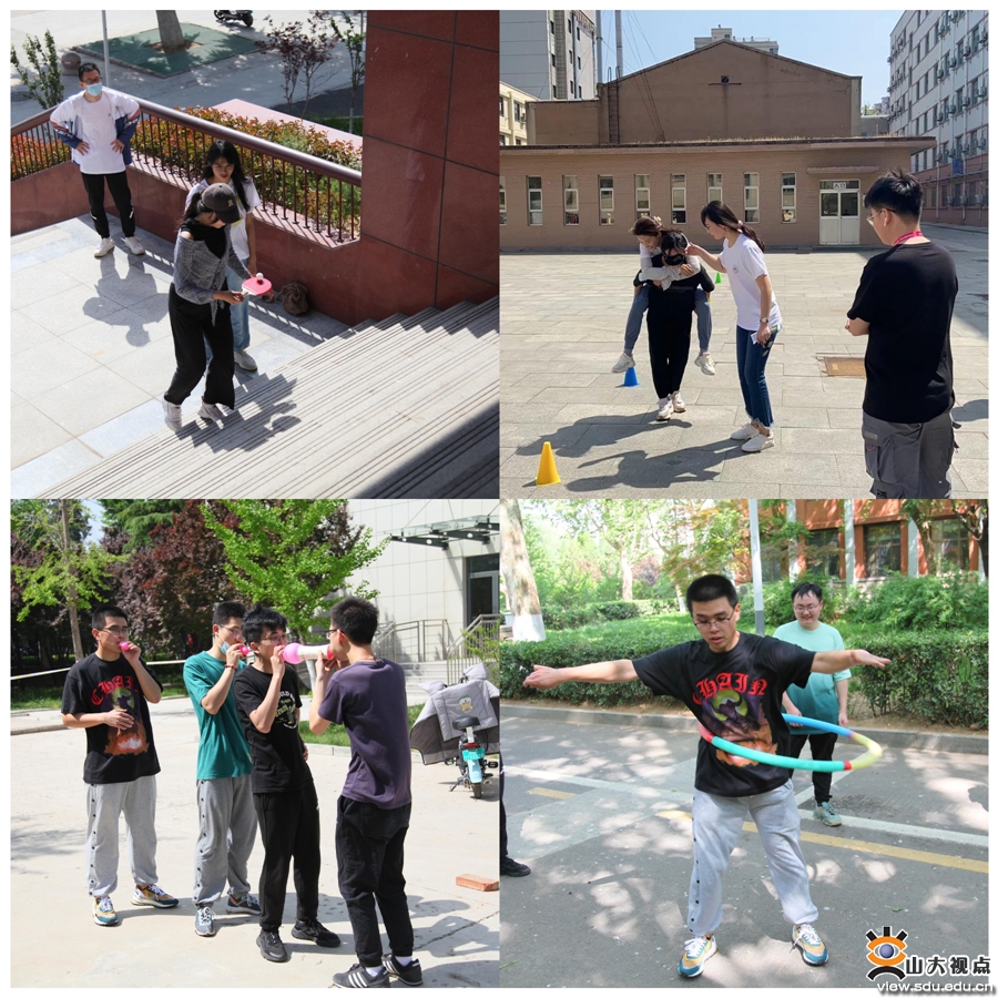 本次比赛共有来自电气工程学院、机械工程学院、齐鲁交通学院、土建与水利学院、材料科学与工程学院、控制科学与工程学院、能源与动力工程学院、体育学院的84支队伍参赛。比赛项目包含乒乓球接力、跳大绳、智力拼图、“瞎子背瘸子”、足球射门等十个项目和两个隐藏项目,参赛选手6人一组,自由组队,按照设定路线完成项目打卡,最终完成并时长最短的队伍获胜。参赛队伍不仅要完成每个项目的任务,还要寻找定位、快速到达。计时开始后,所有队伍展开激烈角逐,奔跑于千佛山校区南、北校区之间,一路上队员之间探讨活动战术、分配任务,气氛紧张而活泼,充分发挥了团队力量。