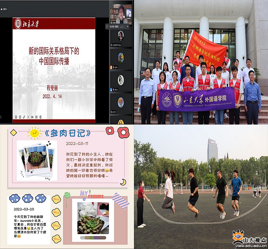 [本站讯]外国语积极配合学校疫情防控工作要求,强化党建引领,落实“三全育人”要求,丰富校园文化生活,缓解学生心理压力,师生携手汇聚起共克时艰的磅礴力量。