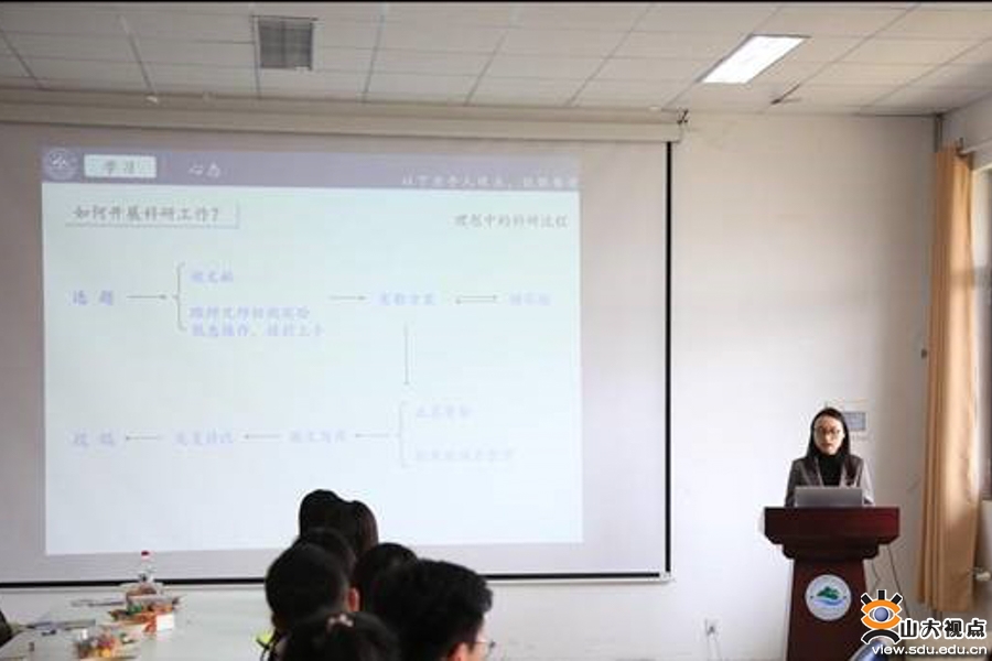 潘静文主要围绕如何阅读文献并开展科研工作进行讲述,通过简洁明了的思维导图讲解如何进行数据处理并撰写论文,并用自己的亲身经历启发大家如何面对实验失败和生活中的挫折、如何平衡科研与生活,为研究生们解决科研、学习、求职等方面的困惑提供了很好的示范。