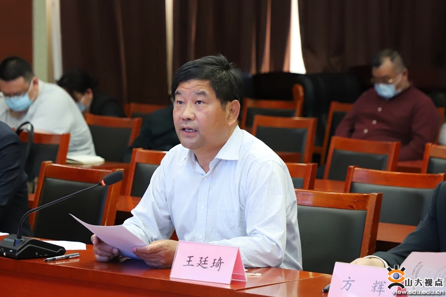 王廷琦在讲话中强调,习近平总书记对加强革命文物资源与高校思想政治工作融合发展高度重视,为用好革命文物资源、培养担当民族复兴大任的时代新人指明了前进方向、提供了根本遵循。希望通过此次合作,进一步深化拓展革命文物教育功能,搭建校馆深度融合平台,开辟山东省革命文物保护运用的新篇章。王廷琦对下一步工作提出三点期望:一是要敢于争先,勇于创新。充分发挥各自平台优势,树立标杆,率先打造全国革命文物协同创新研究中心。聚焦革命文物科学保护、内涵阐释与价值挖掘,创新革命文物保护运用的方法路径,深化拓展融合发展的广度深度,成为引领校馆融合发展的示范高地。二是要立足长远,深化合作。双方要做到优势互补,资源共享,发挥联合效能。充分利用高校的科研教学资源优势,聚焦重大课题开展联合攻关,持续推出有深度、有分量的研究成果、理论成果和教学成果,同时要把革命文物资源禀赋创造性转化为高校思想政治教育教学的优质资源,打造层次丰富、内容多元、形式多样的学习教育和实践活动品牌。三是要强化保障,开创新局。双方要建立合作推进机制,落实保障措施,加强会商联络,实现合作的细化具体化,为推动全省深层次校馆融合发展作出更大贡献。