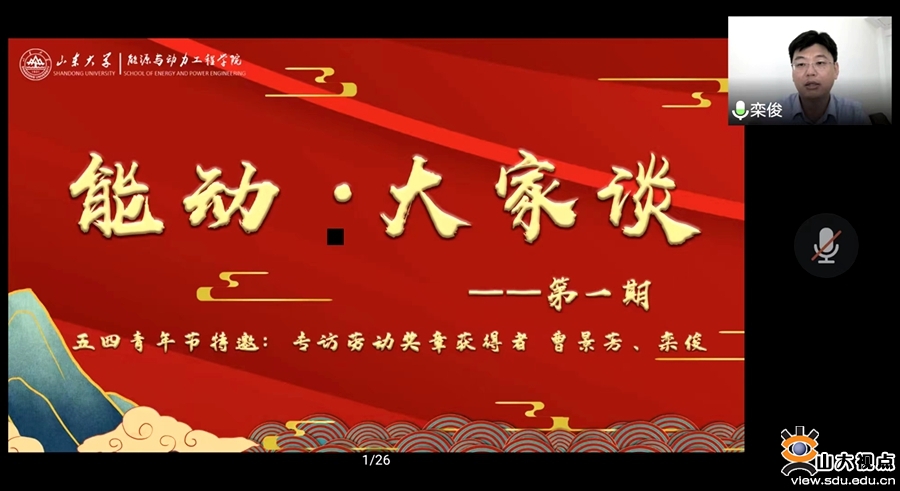 [本站讯]5月4日,能源与动力工程学院于线上举办“能动·大家谈”五四青年节校友专访活动。本次活动邀请了2022年“全国五一劳动奖章”获得者曹景芳、栾俊两位校友。学院党委书记辛公明出席活动并致辞,退休教师代表史良君,教师代表路春美、杜文静、高明参与访谈并发言,访谈由本科生辅导员李雪静主持。