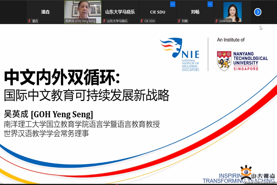 [本站讯]5月13日下午,国际教育学院举办吴英成教授教学流动岗专题系列讲座第二场,主题为“中文内外双循环:国际中文教育可持续发展新战略”。院长马晓乐主持讲座,学院以及海内外近百名师生参加活动。