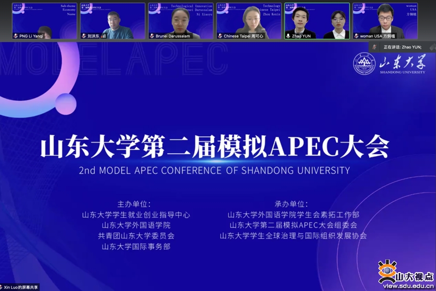 [本站讯]5月14日,山东大学第二届模拟APEC大会通过线上会议方式举行。微软(中国)公共事业部教育行业市场发展总监、模拟APEC大会创始人郭贝思受邀出席大会开幕式。外国语学院副院长刘洪东、院党委副书记魏鲁鸿等出席大会开幕式。