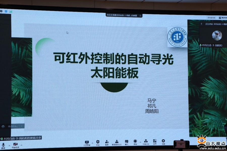 决赛中,选手们按照顺序由本科生至研究生依次进行八分钟的作品陈述和展示,评审老师根据选手们的陈述和展示提出问题和建议,并给出最终作品得分。大赛采取了自由命题与指定命题相结合的参赛形式。其中,指定命题由山大电力技术股份有限公司的技术专家给出,旨在引导学生关注当前新型电力系统的实际需求,进入决赛的作品包括基于小波包的信号分析软件、文档比对工具、智能移动语音垃圾收集装置等。自由命题类作品涉及的范围比较广泛,有专注于软件开发的作品,如基于《山东省电力零售市场交易规则》编写的电价套餐推荐程序、基于STEPS的电力系统仿真软件设计等;也有实物制作的作品,如基于Arduino的低成本激光雕刻机、精细化分时分区的节能消毒锁鲜冰箱、一种基于STM32F4芯片的永磁电机在线反电动势测试仪等;还有学科交叉融合的作品,如介质阻挡放电低温等离子体降解阿维菌素实验与模拟研究、地球和火星气压下等离子体技术分解二氧化碳等。