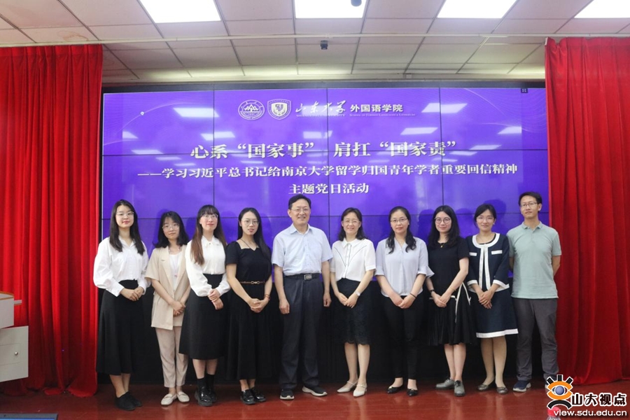 [本站讯]为深入学习贯彻习近平总书记给南京大学留学归国青年学者重要回信精神,外国语学院党委于6月2日组织“心系‘国家事’ 肩扛‘国家责’”主题党日活动。活动邀请董记华、张聪、李月珊、薛琳和冯伟五位留学归国学者作为访谈嘉宾,分享学成归国后投身教学、科学、国际合作交流等方面的成果与收获。学院党委书记薛佩军参加活动并讲话,学院党委副书记刘华主持活动。