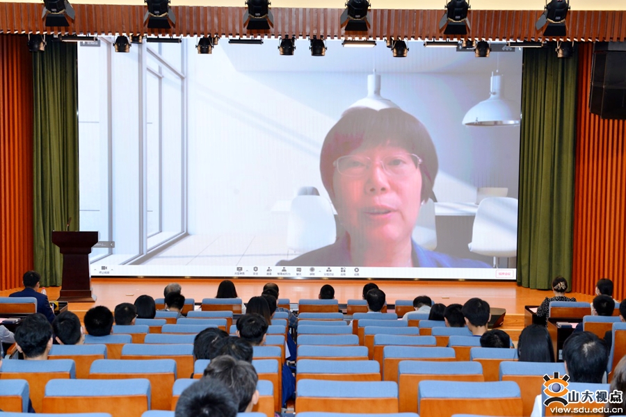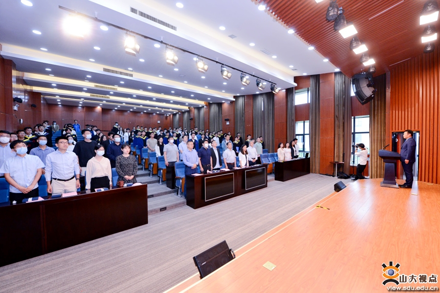 王美琴宣读2022届山东省、山东大学优秀毕业生表彰决定,并对同学们的优异成绩表达衷心的祝贺。她希望同学们在未来的道路上可以坚持自我,敢于有梦、勇于追梦、勤于圆梦,终身学习,终身正直,终身热爱,终身坚守,奋力谱写人生精彩旅程。