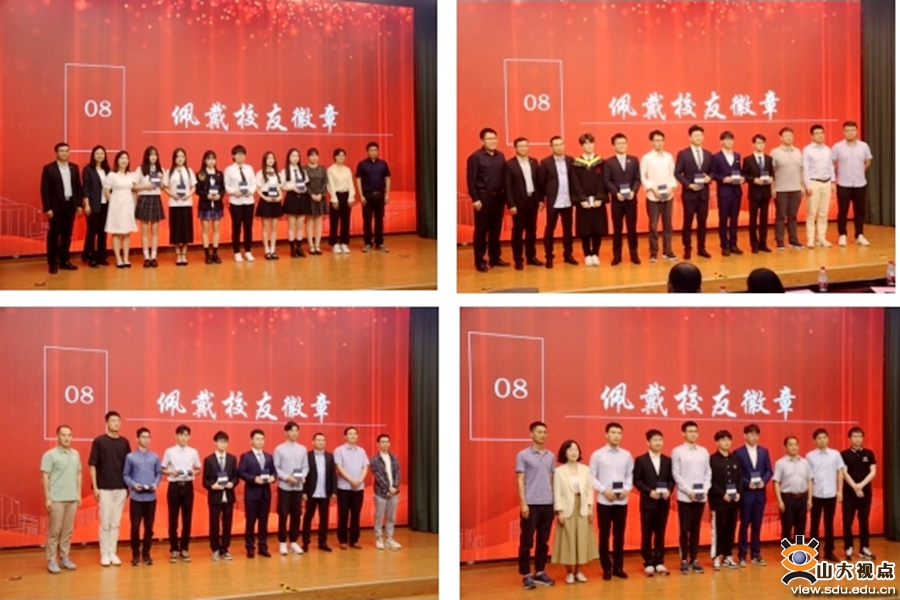 学院为每一名毕业生精心准备了礼品,一支刻有自己名字的钢笔、一支刻有学院院训“明德”“踔厉”“日新”“志远”的书签、带有唯一编号并刻有自己姓名的校友徽章。教师代表为毕业生代表颁发校友徽章,欢迎毕业生常回学院看看。