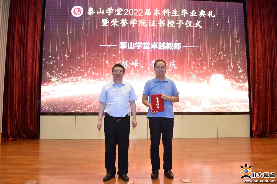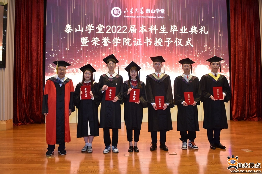 [本站讯]6月17日,泰山学堂2022届本科生毕业典礼暨荣誉学院证书颁发仪式在中心校区举行。中国科学院院士、泰山学堂院长彭实戈,山东大学副校长吴臻出席典礼并致辞。校长助理、本科生院院长曹现强主持本次典礼。