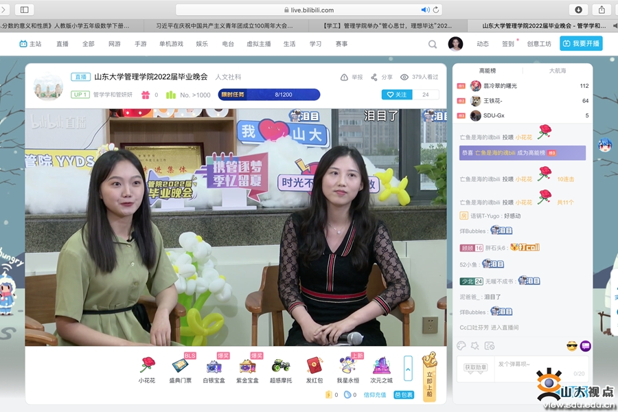 武常岐、孟庆春通过直播间送上学院的期许与祝福。他们祝贺全体2022届毕业生顺利完成学业,收获了宝贵的知识与能力、情感与真理;嘱托各位同学继续涵养家国情怀、弘扬担当精神、锤炼崇实品格、培植创新素养,传承光大“山大基因”,坚守理想信念、与时代同频共振;期盼各位同学能够常回学校、学院,共同分享成长的喜悦与收获。