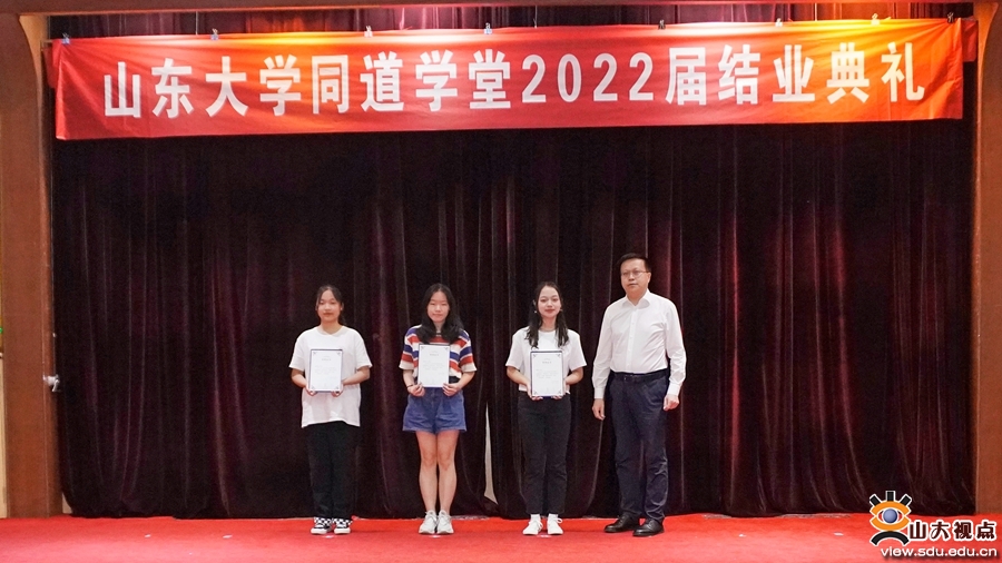 “石榴”优秀学生奖一等奖、“石榴”特长奖一等奖获得者杨皓涵作为同道学堂2022届优秀学生代表发言。她表示,山大的生活,让我深深感受到了强烈的归属感,文学院的栽培,让我深刻体会到了温暖的人文关怀,衷心感谢学校、学院、老师们的培养和帮助。她表示一定会牢记初心,砥砺前行,知行合一,踵事增华,自觉担起时代使命,努力在青春的赛道上跑出最好的成绩。