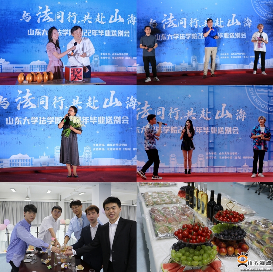 [本站讯]6月20日,法学院“与法同行,共赴山海”2022年毕业送别会在青岛校区举行。法学院党委书记于向明,法学院院长、法学院(威海)院长周长军,校友代表、北京市中伦(青岛)律师事务所权益合伙人、法学院合作导师韩大更出席晚会。