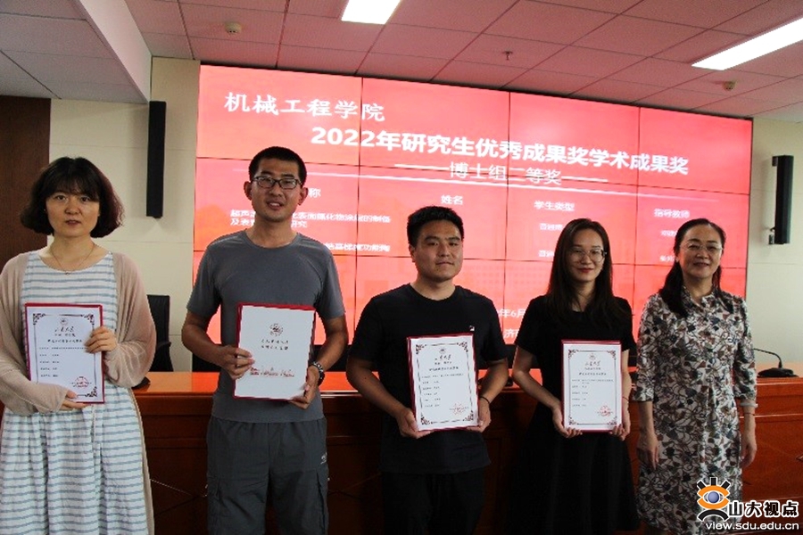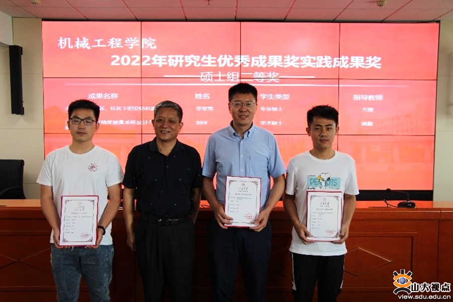 [本站讯]6月20日上午,机械工程学院2022年研究生优秀成果奖颁奖仪式在千佛山校区举行。学院党委书记刘杰、院长万熠、党委副书记滕玉军出席仪式并为获奖学生和导师颁奖。仪式由副院长姚鹏主持。
