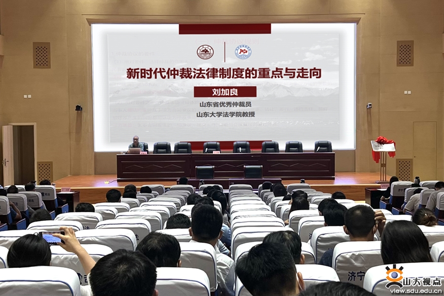 仪式上,山东大学法学院教授、博士生导师、第五届济宁仲裁委员会仲裁员刘加良作题为“新时代仲裁法律制度的重点与走向”的法律讲座。