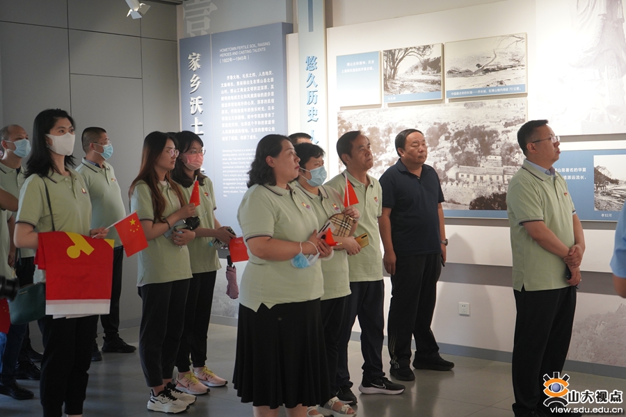 7月2日,师生一行首先参观了焦裕禄纪念馆。纪念馆中的一幅幅图片、一件件实物,生动展现着焦裕禄同志“心中装着全体人民、唯独没有他自己”的光辉形象。通过详细了解焦裕禄同志为人民利益而忘我工作、鞠躬尽瘁、两袖清风的一生,大家深刻感悟了“亲民爱民、艰苦奋斗、科学求实、迎难而上、无私奉献”的焦裕禄精神。参观结束后,全体党员面向党旗,整齐列队,高举右拳,重温铿锵有力的入党誓词。