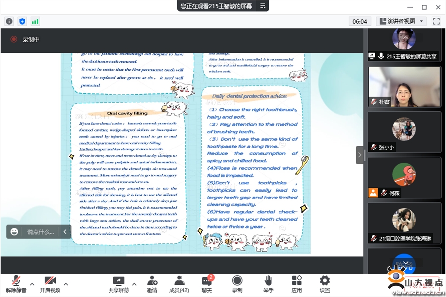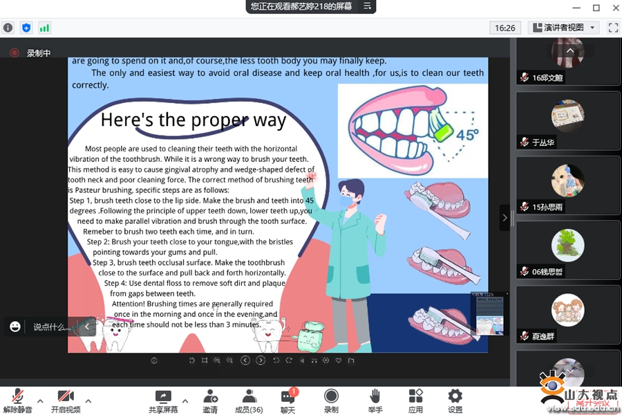 活动中,同学们生动的科普表现形式,流利的英语口语表达,得到了现场评委的一致好评。他们表示,科普是医学领域非常重要的工作,希望同学们充分整合线上线下各类资源,进一步提高科普创新能力,怀揣求知之心,为传播口腔健康科普最强音不断努力。