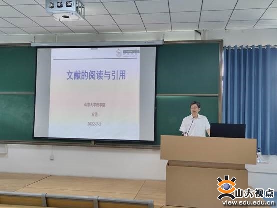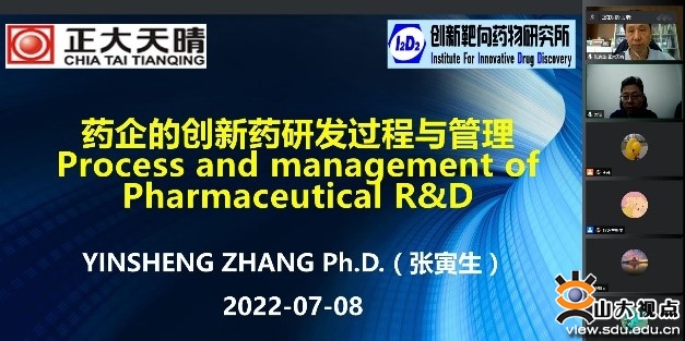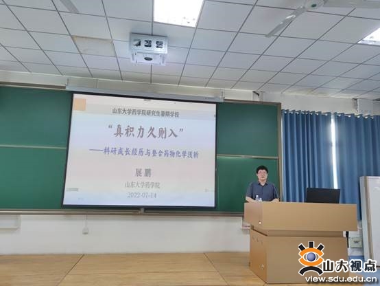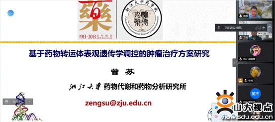 瑞典卡罗琳斯卡医学院终身教授、中国工程院外籍院士曹义海以“新生血管治疗代谢疾病机制探讨”为主题作科研讲座,以通俗易懂、幽默风趣的语言向同学们介绍了寒冷状态下的老鼠如何通过增加血管生成的方式达到“减肥”的效果。北京大学化学学院雷晓光教授作“为合成科学插上化学与生物两只翅膀”主题讲座,重点阐述了如何基于化学与生物学手段搭建从基础生物学研究到创新药物研发之间的桥梁。浙江大学药学院曾苏教授以抗肿瘤药物的现状与困境为研究背景,对药物转运体的基本概念与知识进行介绍,深入分析了药物转运体的不同分类及作用。中山大学眼科学国家重点实验室潘景轩教授就“肿瘤干细胞药理学”展开讲解,分析了肿瘤这种疾病的复杂性,使大家进一步深入了解到肿瘤的发病机制以及肿瘤干细胞的各项功能。山东大学药学院院长鞠建华通过分享我国中医科学院终身研究员兼首席研究员屠呦呦创新研制新型抗疟药—青蒿素和双氢青蒿素的历程,展现了天然药物与生物这一领域的研究日常与方法。山东大学特聘教授、山东省医学领军人才刘新泳以“靶标结构的抗病毒药物的研发策略”为题,为同学们介绍了基于靶标结构的抗病毒药物研究、基于HIV-1逆转录酶、基于流感病毒神经氨酸酶、流感病毒血凝素为靶点抑制剂的发现等内容。山东大学药学院姜新义教授通过引入现有的新冠疫苗制剂形式,以及国内外对新冠疫苗的科研投入与产出情况,加深了同学们对核酸药物递送系统的了解。山东大学药学院免疫药物学研究所所长张建从肿瘤免疫治疗的基础概念出发,详细介绍了目前免疫治疗中最为关键的两个方向——免疫检查点抑制剂以及CAR-T/NK细胞疗法。泰山学者特聘专家、山东大学药学院王凤山教授讲解了糖类药物的研究现状以及新结构多糖和寡糖的发现、多糖与寡糖衍生物的研究、糖疫苗等糖类药物的研究方向。泰山学者青年专家、山东大学药学院教授赵维讲授了儿童药物政策、外推策略在儿童药物研发中的应用、模型引导的药物研发技术和模型引导的方法与应用价值等儿童临床药物开发知识。山东大学药学院副院长沈涛教授以《神农本草经》为始,向同学们介绍了中药治疗疾病的有效性、中药的研究模式、中医药驱动的创新药物研究、中医药传承创新面临的问题等多个方面的内容。