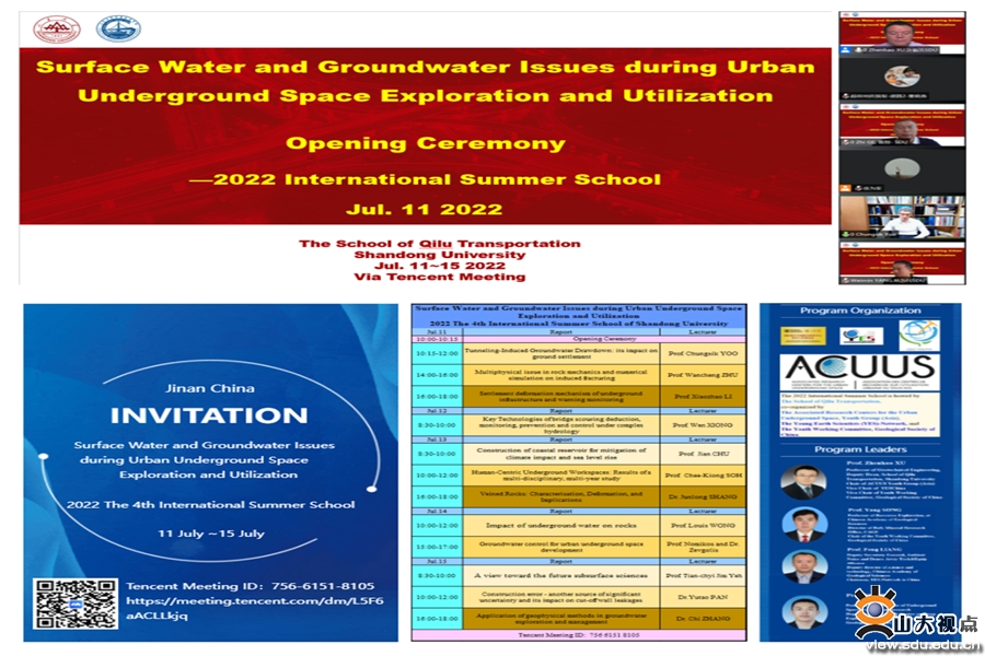 [本站讯]7月11日至15日,齐鲁交通学院2022年暑期特色国际项目顺利开展,项目受到国际地下空间联合研究中心(ACUUS)、世界青年地球科学家联盟(YES-Network)、中国地质学会青年工作委员会等国内外学术组织的联合支持。齐鲁交通学院副院长、城市地下空间工程系主任许振浩主持会议,副院长葛智、杨为民出席开幕式。