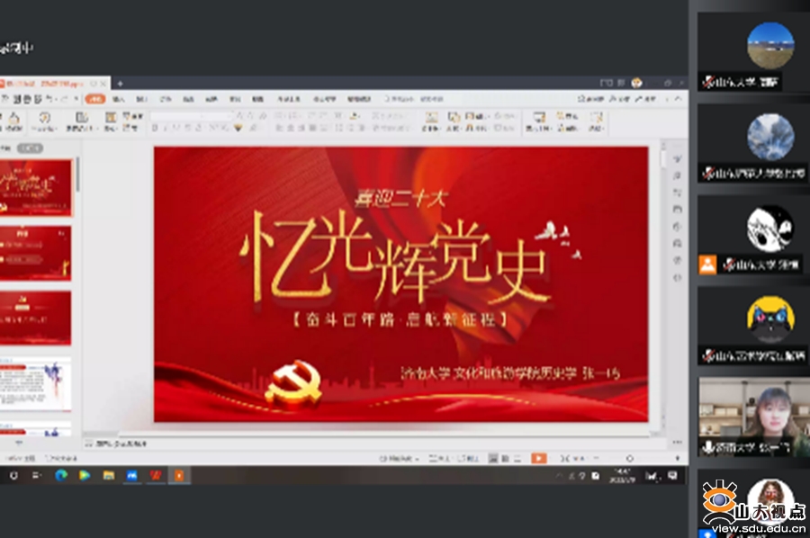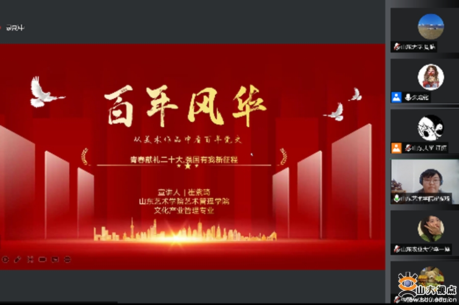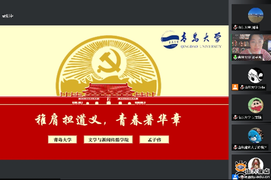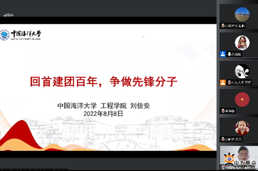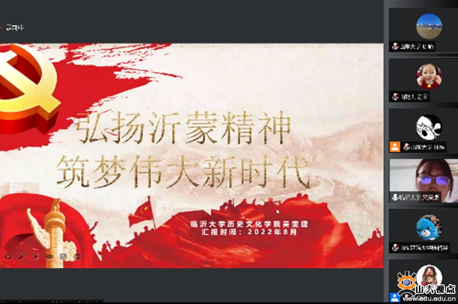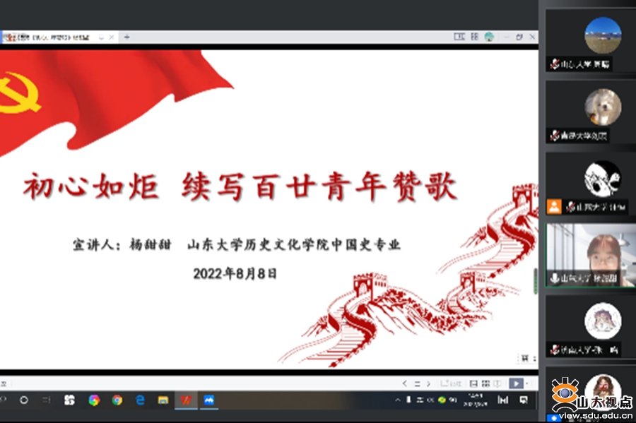 [本站讯]8月8日,由山东大学历史文化学院主办,山东大学“初心如炬”硕博宣讲团和历史文化学院硕士生第二、三党支部承办的“青春献礼二十大 强国有我新征程”山东省高校青年联合宣讲活动举行。来自山东大学、中国海洋大学、山东农业大学、山东艺术学院、山东师范大学、济南大学、山东财经大学、山东建筑大学、临沂大学、青岛大学等10所省内高校青年参与宣讲交流。山东大学团委副书记翁祥栋、历史文化学院副处级辅导员李一楠出席活动并致辞。