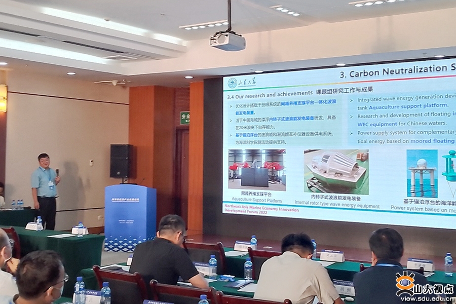 山东大学青岛校区常务副校长韩建新出席海洋新能源产业发展论坛并致辞。刘延俊教授在海洋新能源产业发展论坛作“碳中和新星:海洋可再生能源”专题报告,围绕海洋可再生能源开发潜力、开发技术、助力碳中和展开论述,并就山东省海洋可再生能源发展前景和海洋可再生能源规模化利用问题回答记者。他表示,储量大、种类多的海洋可再生能源推动了“零碳”电力技术发展,成为碳减排的重要组成部分;“就地取能,海能海用”的发展理念也将促进碳汇渔业等新兴技术领域的发展,增强海洋“负排放”作用。因此,海洋可再生能源能够在碳减排、碳增汇两端发力,成为实现“碳中和”新星。刘延俊教授从山东省海域情况、科技基础、海能海用、多能互补四个方面深入剖析了我省海洋可再生能源的发展前景;同时从海洋能开发利用技术和市场资本关注度两方面分析了海洋可再生能源的产业化进程,并结合我省省情对如何规模化利用海洋能提出了建设性的建议。