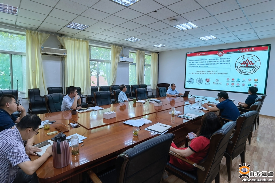 学院院长孙晋海主持了下午举行的一校三地学校体育工作务虚会。会上,全体成员围绕全面高效提升山东大学学生体质健康水平这一主题,展开了深入研讨。院长助理李拓键就国家学校体育政策文件精神落实情况进行了专题汇报,院长助理张宪亮汇报了清华大学、浙江大学等几所国内高校的先进群众体育工作做法并提出了可借鉴经验建议。副院长王先亮、副院长张洪振、威海校区体育教学部副主任战文腾分别汇报了济南校本部、青岛校区、威海校区的体育工作中存在的问题不足,并认真分析了原因、提出了解决对策。副院长王先亮作了“从测试到育人:学生体质健康水平提升路径”的专题汇报,梳理了体质健康测试的政策要求,提出了体质健康测试的发展目标,分析了学生体质健康水平提升路径。孙晋海对各项汇报内容表示了肯定,提出全体班子成员要紧紧围绕本次务虚会主题,不断加强学习,增强系统观念,强化责任意识,继续精耕细作,发展形成更高水平的山大体育工作模式。