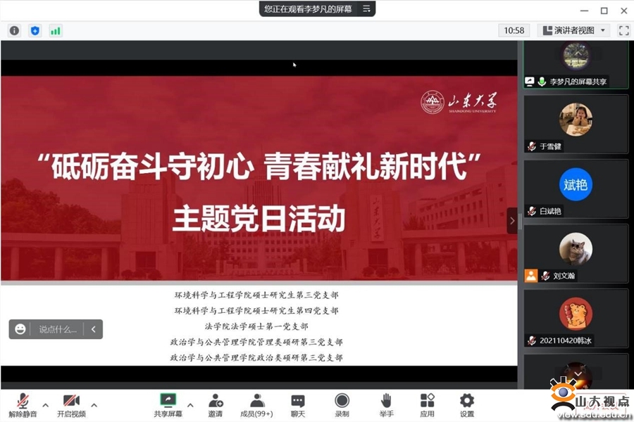 活动由政管学院管理类硕士研究生第三党支部书记李梦凡、环境学院硕士研究生第三党支部书记刘文瀚主持。五个支部全体党员、预备党员、党员发展对象、入党积极分子共百余人参加此次活动。