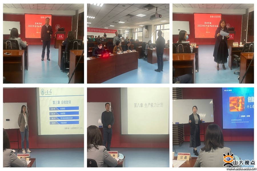 管理学院12名青年教师参加本次比赛,分别是战略与创新创业系田晓聪、肖书锋,领导力与组织管理系陈梦媛、门成昊、王政,会计学系李雪、余渡,文化和旅游学系李帅帅,项目管理与工业工程系谢磊,信息系统与供应链管理系付学梅、王景鹏、薛小乐。经过赛前的精心筹划和充分准备,比赛中各位老师授课内容丰富、条理清晰,课件设计精美,展现出了青年教师朝气蓬勃、奋发向上的精神面貌,整场比赛精彩纷呈,掌声不断。