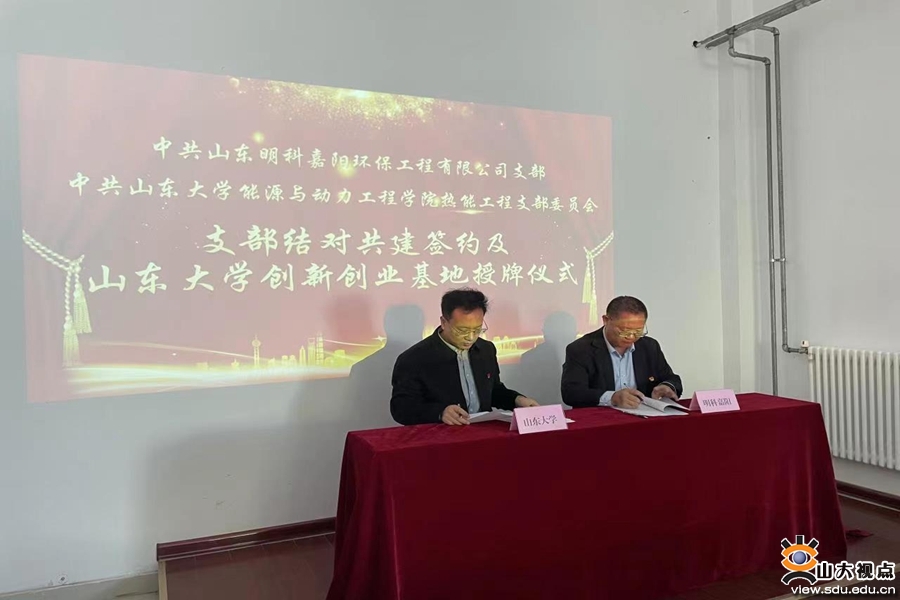 会上,韩奎华与张魁耀代表双方党支部签署了支部联建协议书,李永卫与胡冰共同为联建基地和山东大学实习教学基地揭牌。仪式结束后,全体参访人员参观了山东明科嘉阳环保工程有限公司生产现场,双方进行了技术和管理方面的交流。