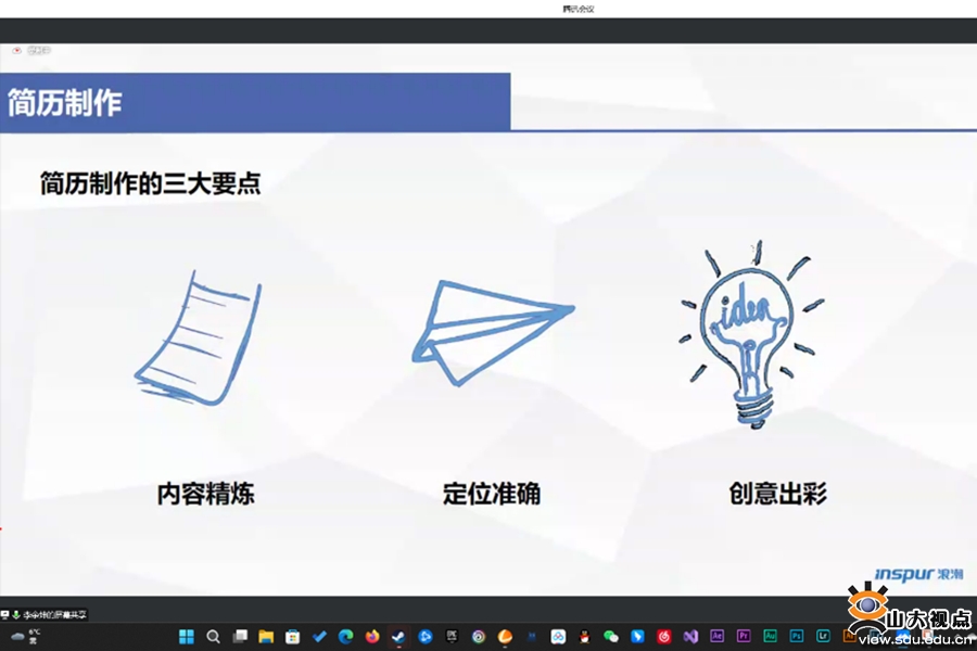 李余坤结合自身经验为同学们指导职业生涯规划,借助职业锚理论、霍兰德职业测试量表等理论方法,分享规划职业方向的技巧方法。随后,他从HR的角度出发,向大家介绍了简历设计的重点知识。他谈到,简历中的信息要紧凑明确,突出重点,排版方式简洁合理,充分展示个人优势。李余坤有六年校园招聘经历,对于职场面试具备丰富经验。他介绍道,同学们在面试前要提前了解半结构化面试、star行为面试法则等面试方式,掌握岗位需求和发展现状,做好充足准备,面试时才能从容不迫。讲座最后,李余坤介绍他所在的浪潮公司,分享个人职场生活,介绍浪潮公司与控制学院的研究合作项目,进一步拓宽同学们的职涯视野。