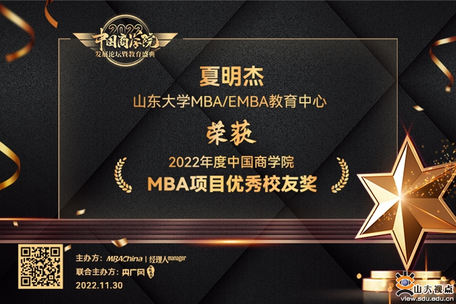 山东大学EMBA校友夏明杰荣获“2022年度中国商学院MBA项目优秀校友奖”