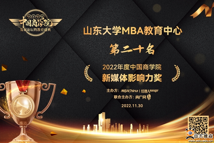 山东大学MBA/EMBA教育中心荣获“2022年度中国商学院新媒体影响力奖”