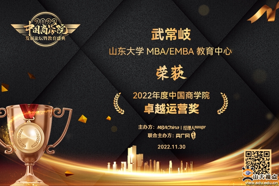 山东大学管理学院院长、MBA/EMBA教育中心主任武常岐荣获“2022年度中国商学院卓越运营奖”
