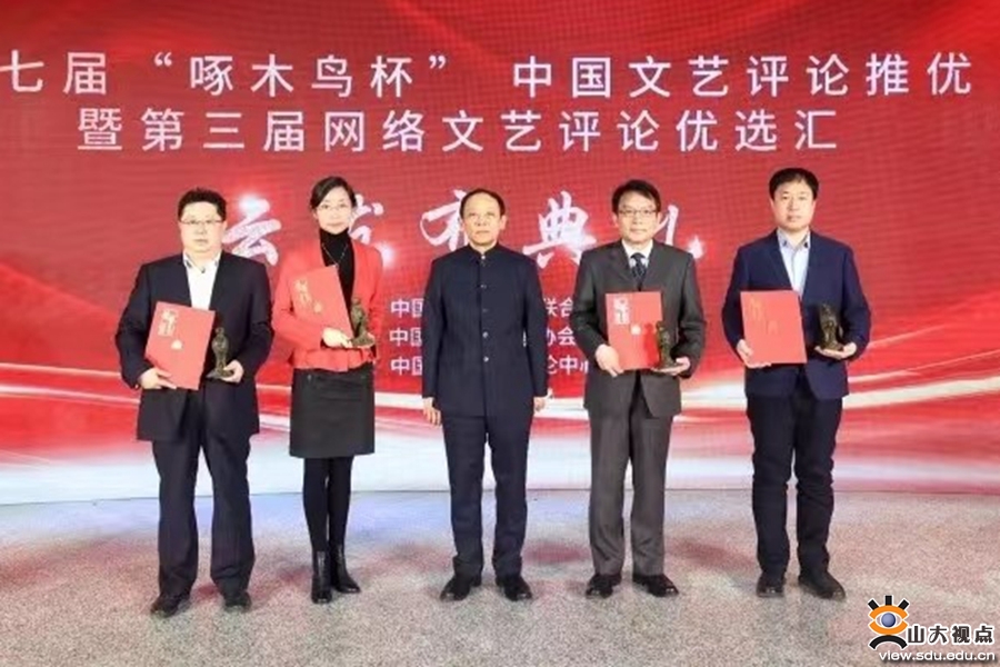 [本站讯]1月13日,由中国文学艺术界联合会、中国文艺评论家协会主办的第七届“啄木鸟杯”中国文艺评论推优暨第三届网络文艺评论优选汇云发布典礼在京举行。文学院特聘教授、中国文艺评论(山东大学)基地主任范玉刚的作品《文艺评论要在提高专业性、社会性和方位性意识中增强权威性》(原载于《中国艺术报》2021年8月11日)获第七届“啄木鸟杯”中国文艺评论优秀文艺长评文章,并代表获得长评推优作者发表感言“以胸怀‘国之大者’的敬畏之心把好文艺评论的方向盘”。