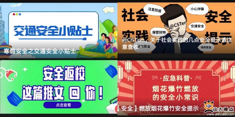 切实加强安全教育管理。放假前,学院召开学生工作队伍专题会议,研究谋划寒假期间学生安全教育管理相关工作。分年级召开学生大会,稳妥安排学生离校。建立在校学生工作台账,动态掌握学生离校时间和安排,切实做到底数清、情况明。依托学院“网小安”微信公众号积极开展寒假社会实践、交通出行、烟花爆竹、疫情防护等主题安全教育,确保学生度过一个安全、祥和、充实的寒假。