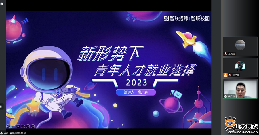 高广森就“当下高校应届毕业生更向往的行业”和“后疫情时代各行业对青年人才的需求”两个主题进行了详细阐述,并在此基础上引出“剖析自我”—即理性分析自我的优势、性格、能力等方面的重要性。随后,高广森展示了过去几年来主要行业的简历投递占比以及同比增长率等指数,分析得出制造业、生物工程业、服务业在近几年的发展势头强劲,以及青年人才的薪资和待遇等条件稳步提升,充分展现出当下社会对优秀青年人才的紧迫需求。高广森还就“考研与就业”“如何提升自己对央企、国企的就业竞争力”“如何在职场中提升自己的综合水平”三个方面与学生展开了细致的讨论与交流。