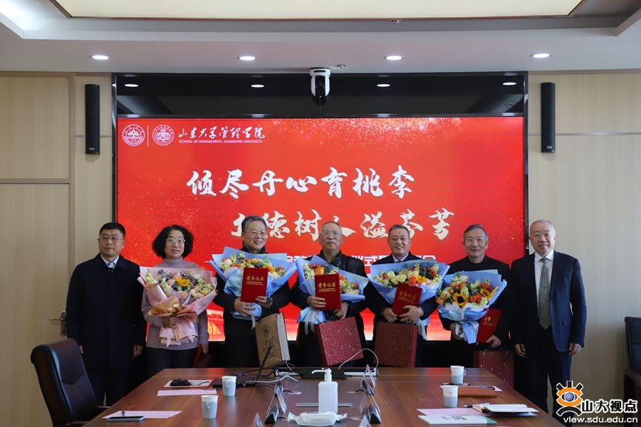 最后,孟庆春衷心感谢各位荣休教师将人生最好的年华奉献给管理学院,用汗水浇灌教育事业,于厚土中孕育万千桃李。他表示,五位教师丰富的理论知识和实践经验是学院宝贵的财富,希望五位教师仍能成为学院发展坚实的后盾力量,在人生新阶段中继续铺展绘制学院新画卷。