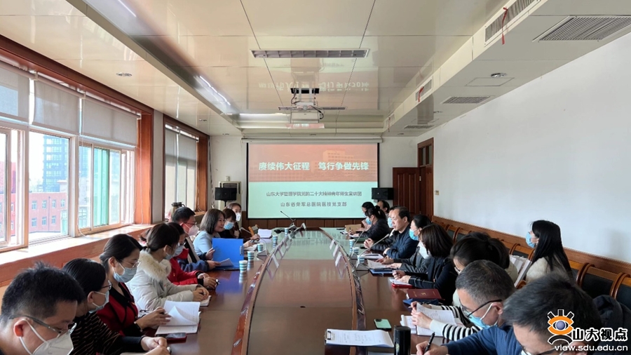 [本站讯]2月23日,管理学院青年师生宣讲团赴山东省荣军总医院与医技党支部开展党的二十大精神联学联讲活动,以“赓续伟大征程 笃行争做先锋”为主题作辅导报告。山东省荣军总医院副院长韩卫东、党委办公室副主任杨勇、医技党支部全体党员、第八青年理论学习小组成员,山东大学管理学院党委副书记周琳、党的二十大精神青年师生宣讲团代表参加活动。活动由山东省荣军总医院医技党支部书记马玉主持。