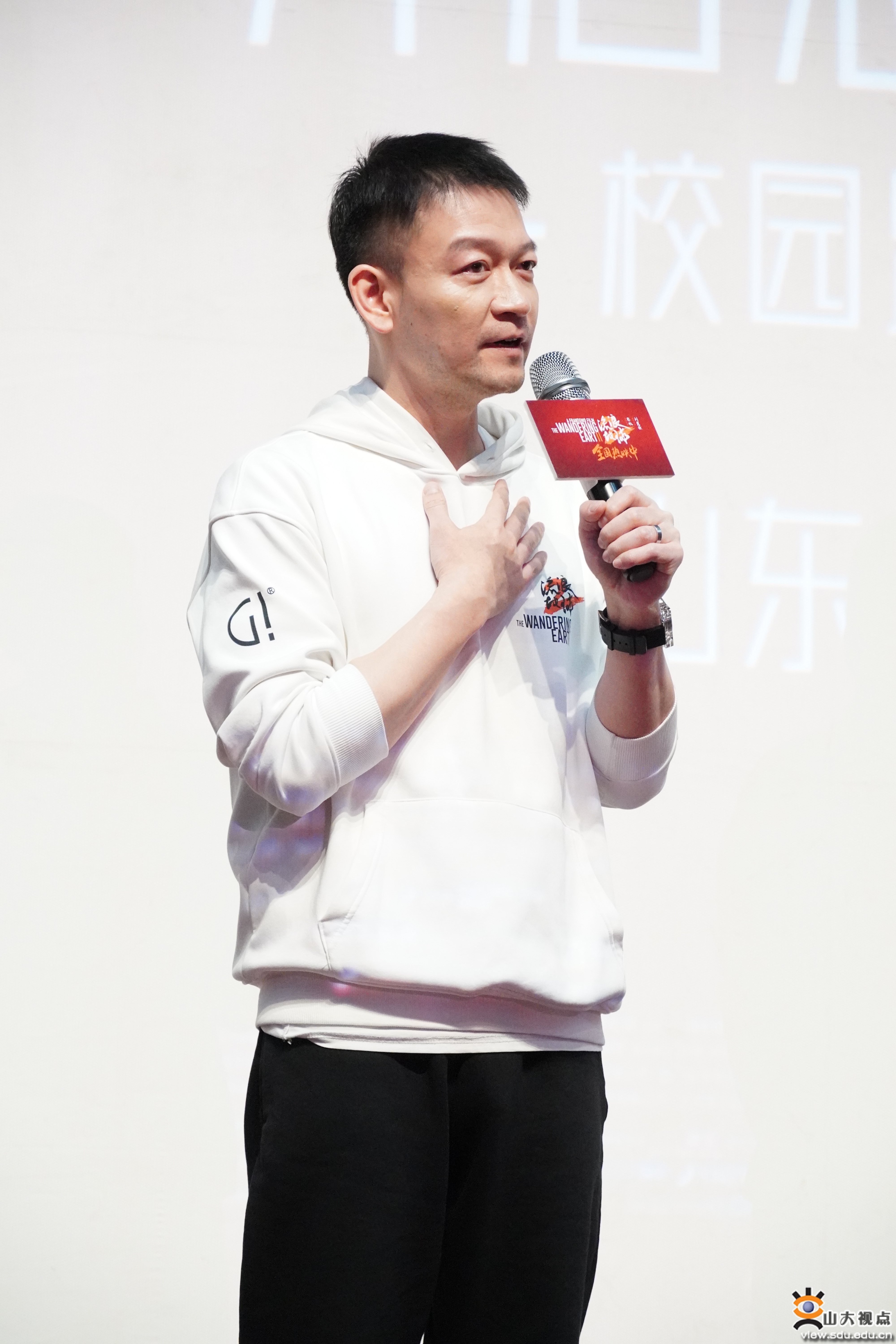 [本站讯]2月25日下午,由山东大学团委、山东大学新闻传播学院、山东大学影视文化艺术传播研究中心联合主办的“开启想象力”电影《流浪地球2》走进山东大学校园路演活动于山东大学中心校区音乐厅举行。在场山大师生共同观看了一场生命存续的奋斗史诗,聆听了电影人的逐梦历程,与主创团队共同品读了中国式科幻的价值理念。