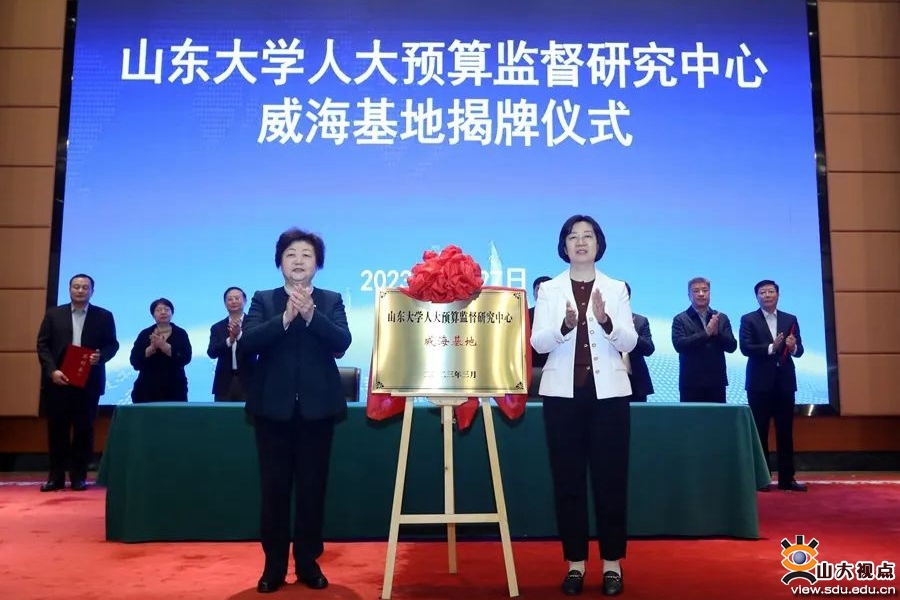 [本站讯]3月27日,山东大学人大预算监督研究中心威海基地举行揭牌仪式。山东大学原校长、人大预算监督研究中心主任樊丽明,威海市人大常委会主任贾瑞霭出席揭牌仪式。