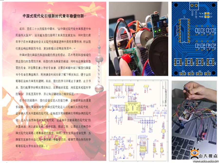 本次比赛结合学情大数据系统进行作品评估,共评选出素质创新奖20人、德育成效奖40人,优秀研发团队11队。部分获奖作品思政结合深入、设计立意新颖、科技含量高,集无线传输、传感侦测、智能识别、行业应用为一体,在安全及数据传输领域有较为广阔的应用前景。一系列形式新颖的课程思政学习活动拓宽了学院学生的专业视野,探索了具有学科特色的思政教育与评价新模式。赛后,同学们纷纷表示,要继续培育山大素养,传承发扬五四精神,树立远大理想,在创新中激发潜力;勇挑时代重担,在奉献中砥砺成长;锤炼品德修为,在实践中全面发展。